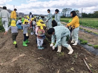 野菜班2年生とみんなで記念撮影! この日はマラソン大会の後にも関わらずみんな元気に参加してくれました。 |